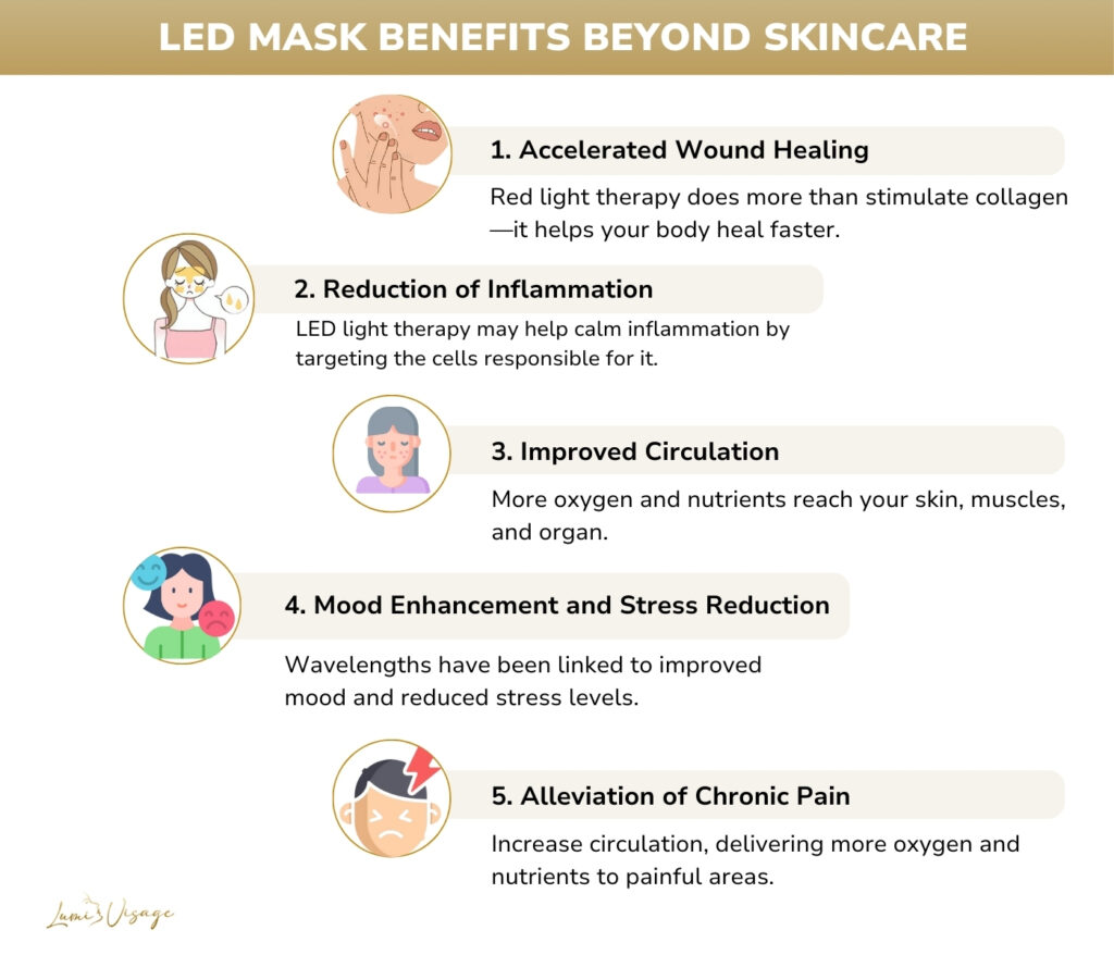 Better circulation means healthier skin, reduced swelling, and faster healing—all from using an LED mask you already own.